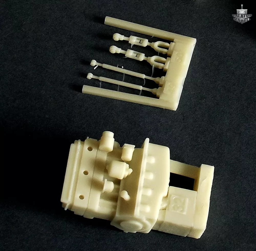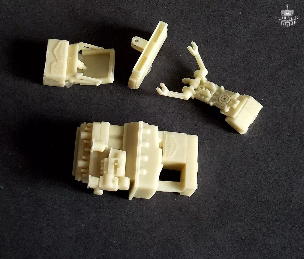 Unmontierter Resinbausatz mit Messingteilen (Fotoätzteile). Farbe und Kleber sind nicht im Lieferumfang enthalten!